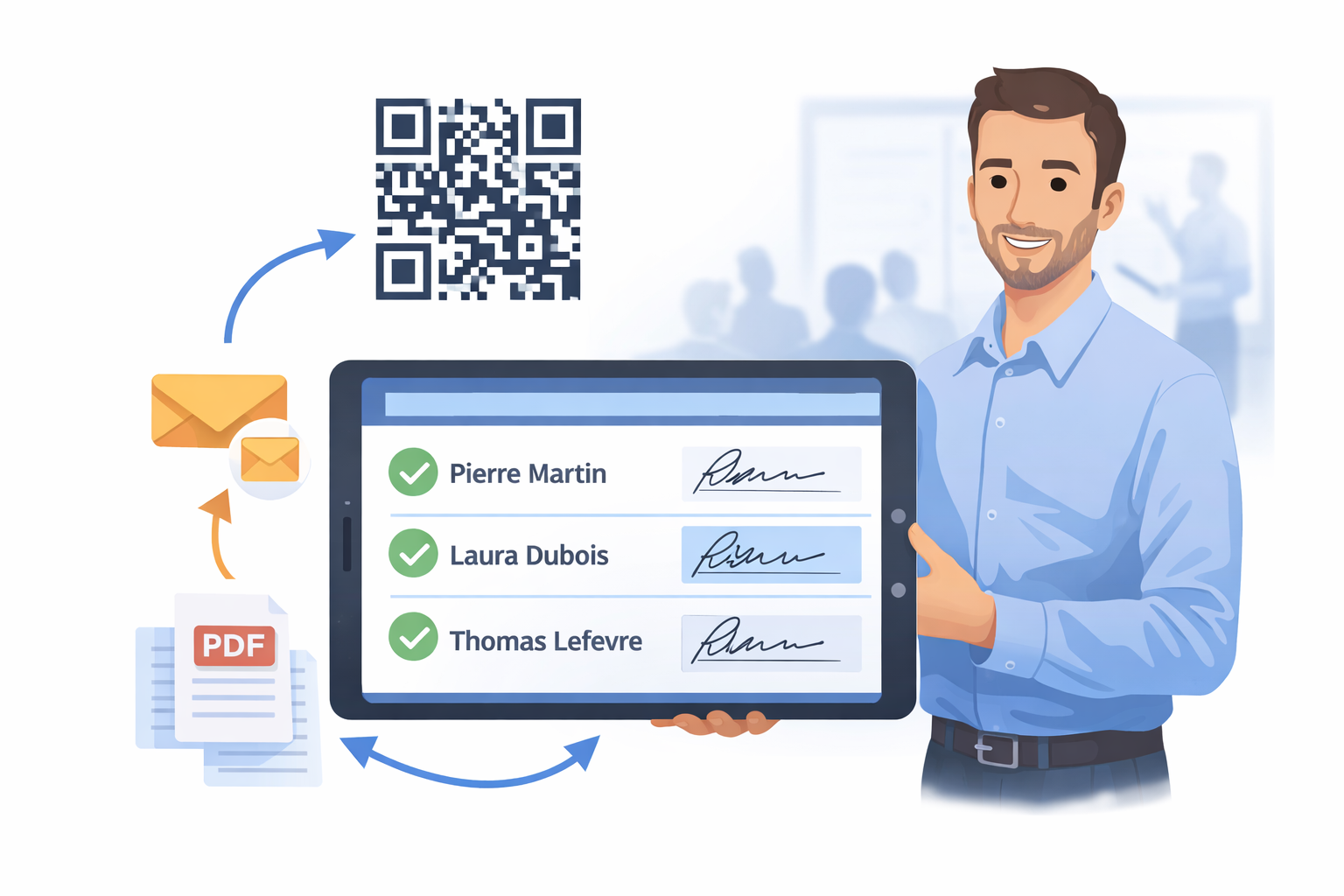 Fpist Sign est une solution de signature numérique conçue pour s’adapter aux pratiques des organismes de formation, mais aussi à tout contexte nécessitant la collecte de signatures de présence.